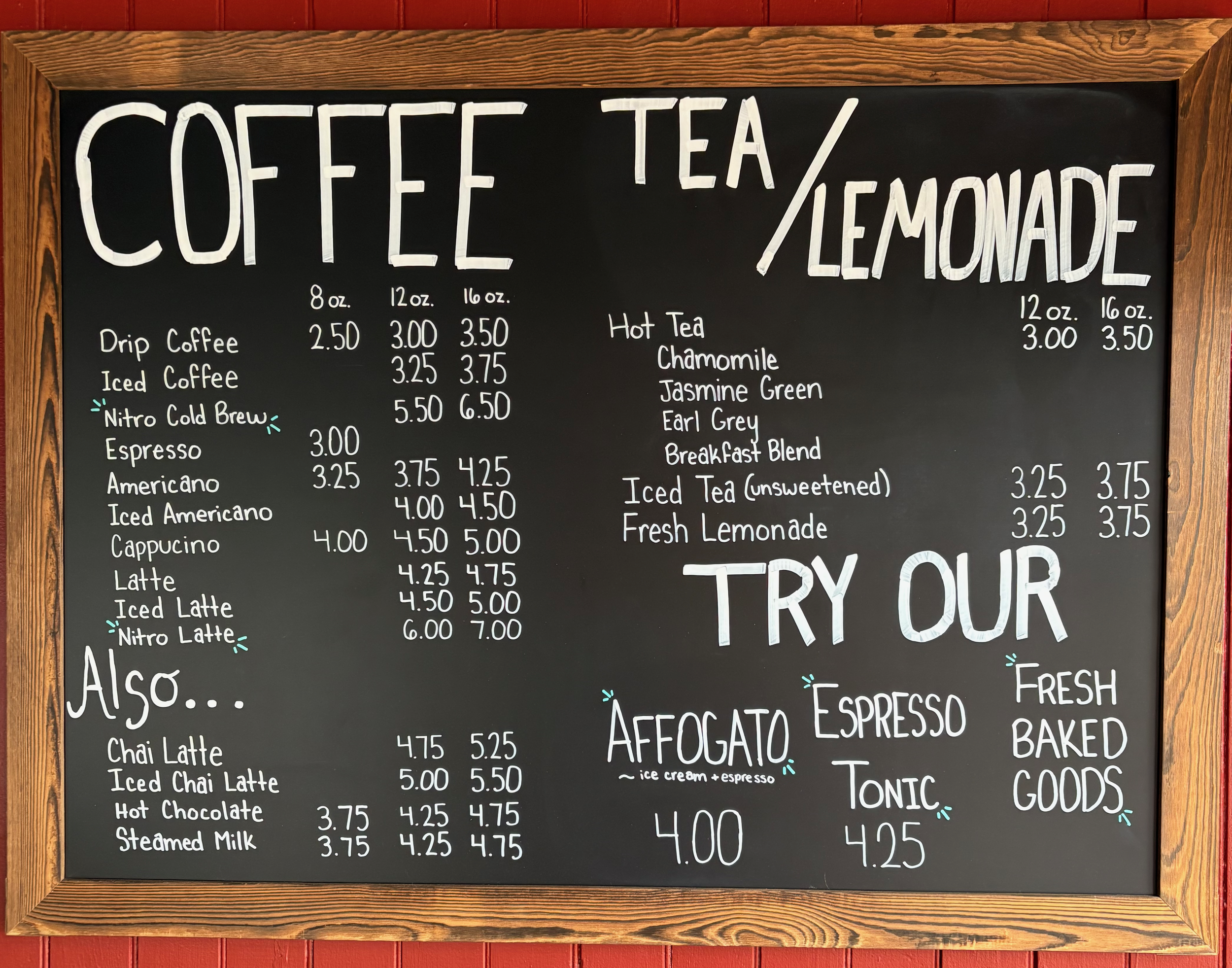 Our syrups are homemade and bakery items made fresh every day. Come see what’s in season!